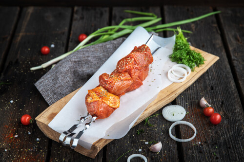 Состав: свинина (тазобедренная, шейно – лопаточная части) рапсовое масло, соль, томатный порошок, сахар, специи пальмовое масло, натуральный аромат (паприки, томата), регуляторы кислотности (Е331, Е262, Е500).