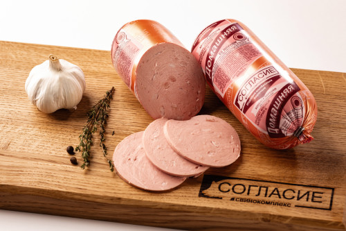 Состав: свинина, вода питьевая, шпик, нитритно-посолочная смесь (соль пищевая, агент антислеживающий (Е536), фиксатор окраски (Е250)), чеснок, натуральные специи, сахара, регуляторы кислотности(Е451), стабилизатор (Е450), антиокис-ли (Е316,Е300), загустители(Е407,Е407а,Е425i,Е415), натуральный краситель(Е120).
