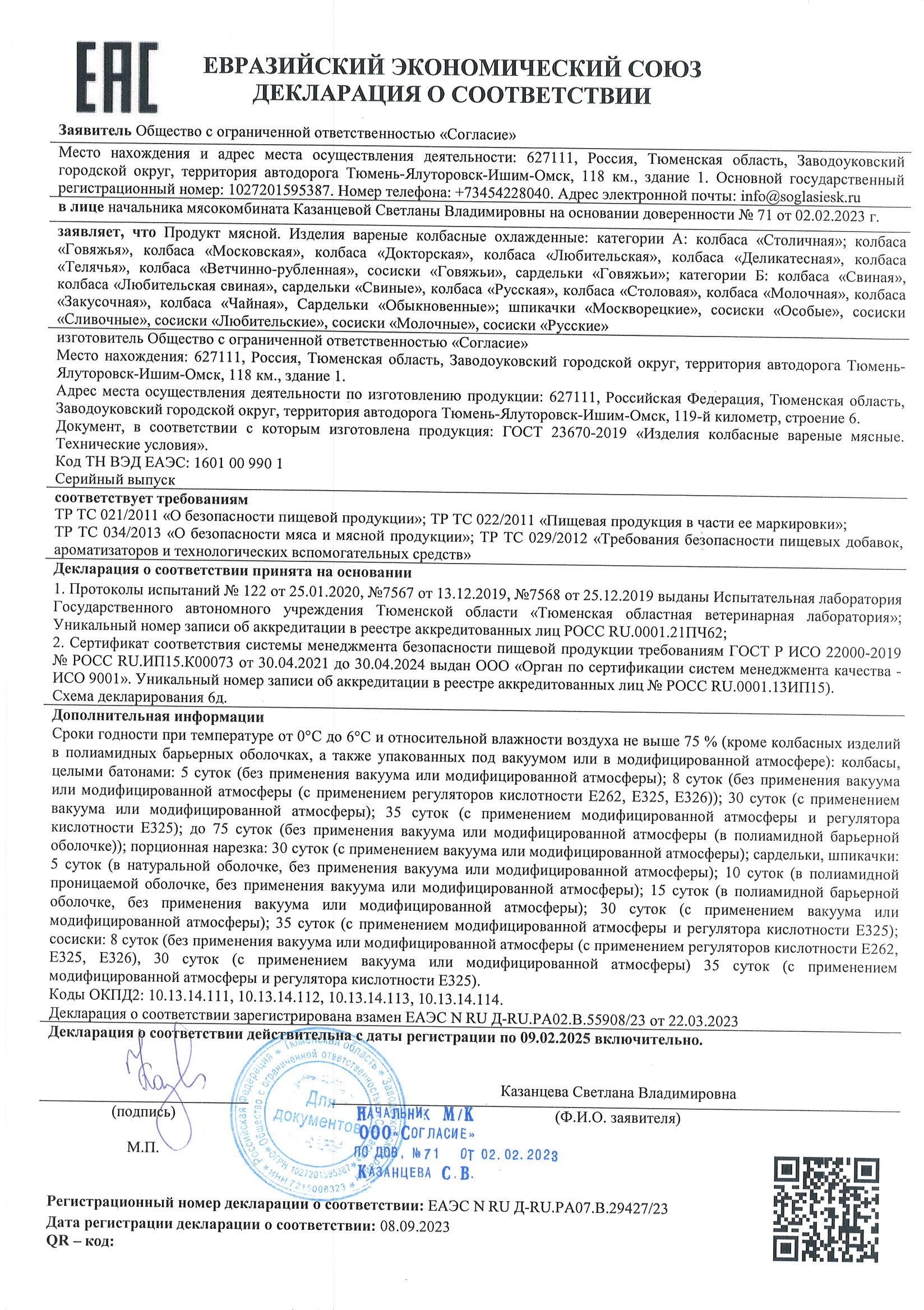 Срок годности: при t -18С – 90 суток.
